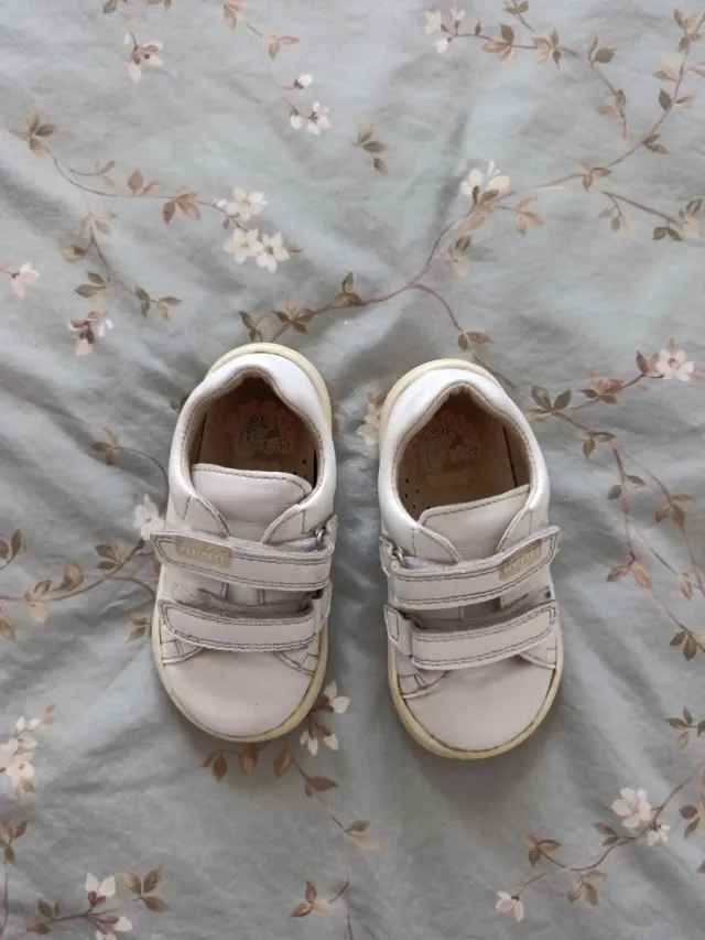 Zapatillas Pablosky de piel en color blanco, talla 23. - Cierre de velcro. - Suela de goma. - Interior textil.