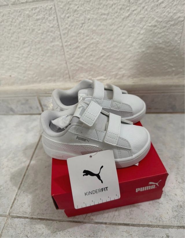 Detalles del productoZapatillas deportivas Puma para niño, modelo Kinderfit, en color blanco.