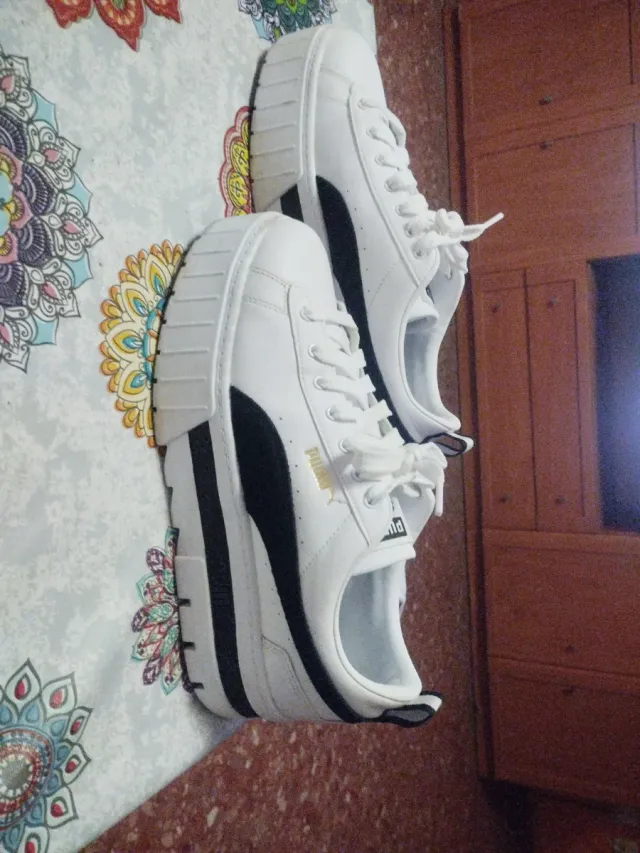 Zapatillas Puma blancas, ideales para el día a día. Son cómodas y combinan con todo. - Diseño moderno. - Cierre con cordones. - Nuevas cuestan 80 - Las vendo por 50 - número 41