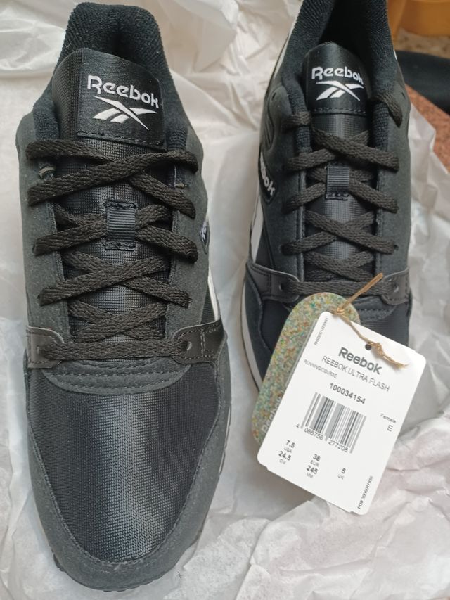 Marca Reebook ultra flash, running en blanco y negro