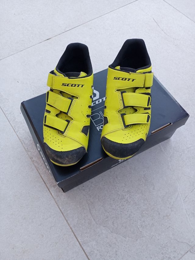Detalles del productoZapatillas de ciclismo Scott talla 41, en color amarillo flúor. Ideales para iniciarse en el ciclismo.