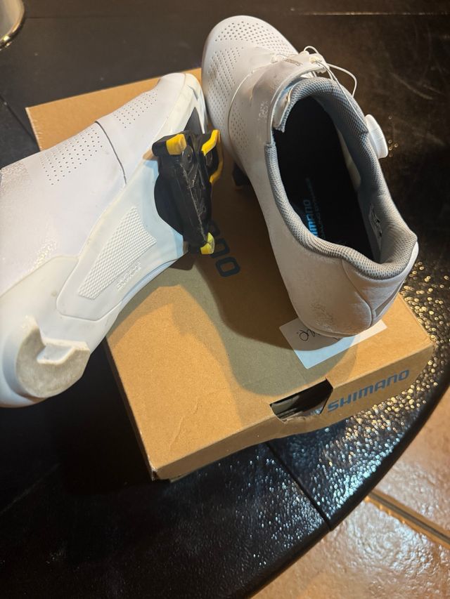 Zapatillas de ciclismo Shimano en color blanco. - Cierre de dial. - Suela para calas de carretera.