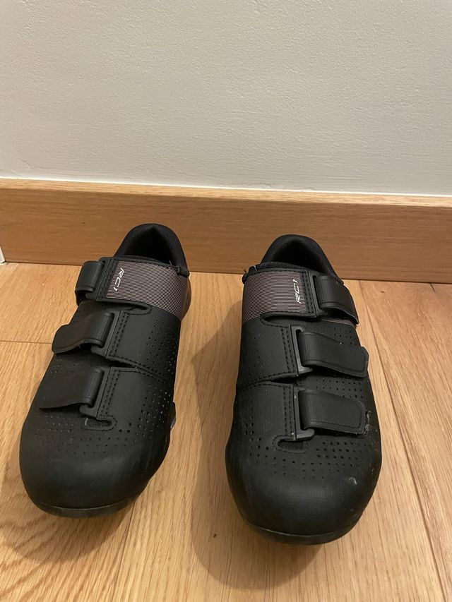 Zapatillas Shimano para ciclismo de carretera + calas - Cierre con velcro. - Diseño en color negro. - Suela con ventilación.