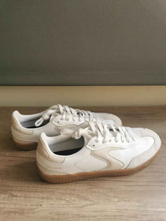 Como nuevo · 38.5 · Skechers · Beige y Blanco