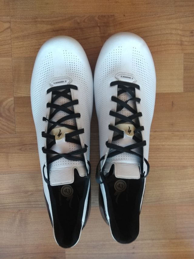 Suela FACT Powerline de carbono ligera y rígida para una buena transferencia de potencia. Índice de rigidez 13.0. Cubierta de cuero sintético en Micromatrix UL flexible con perforaciones de ventilación realizadas con láser, con Adaptive Fit. Cordones antideslizantes hidrofóbicos para un ajuste suave. Talón PadLock moldeado y cubierta de una pieza para un buen ajuste.
