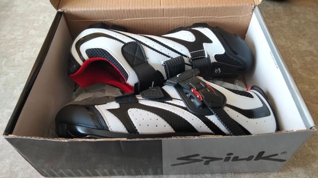 Nuevas, sin extrenar. Las compré para mí hijo y no las pude cambiar xq se me pasó el mes. Para pie de 41-41,5. Con las calas que tuve que poner, que no vienen, me costó 79€
