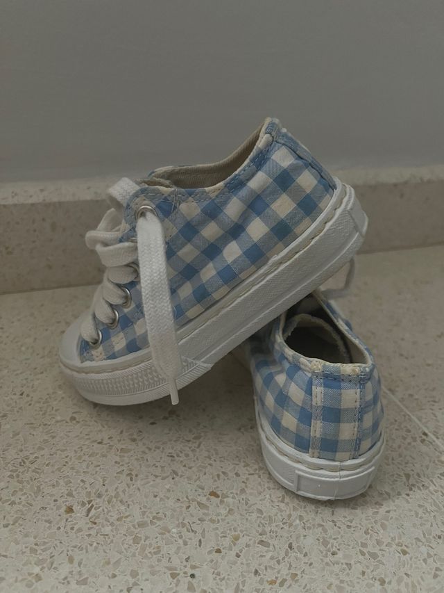Detalles del productoPreciosas zapatillas para bebé, de tela vichy en azul y blanco. Ideales para un look fresco y veraniego. - Son de estilo casual. - Están en buen estado. - Se venden dos zapatillas.