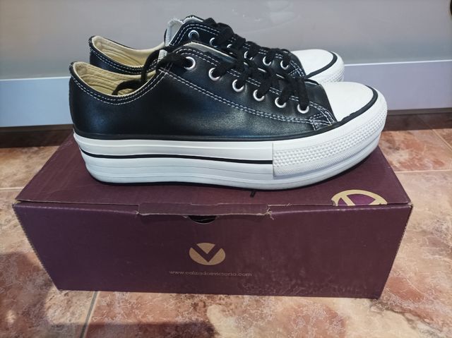 Zapatillas Victoria plataforma Niña Negras y Blan