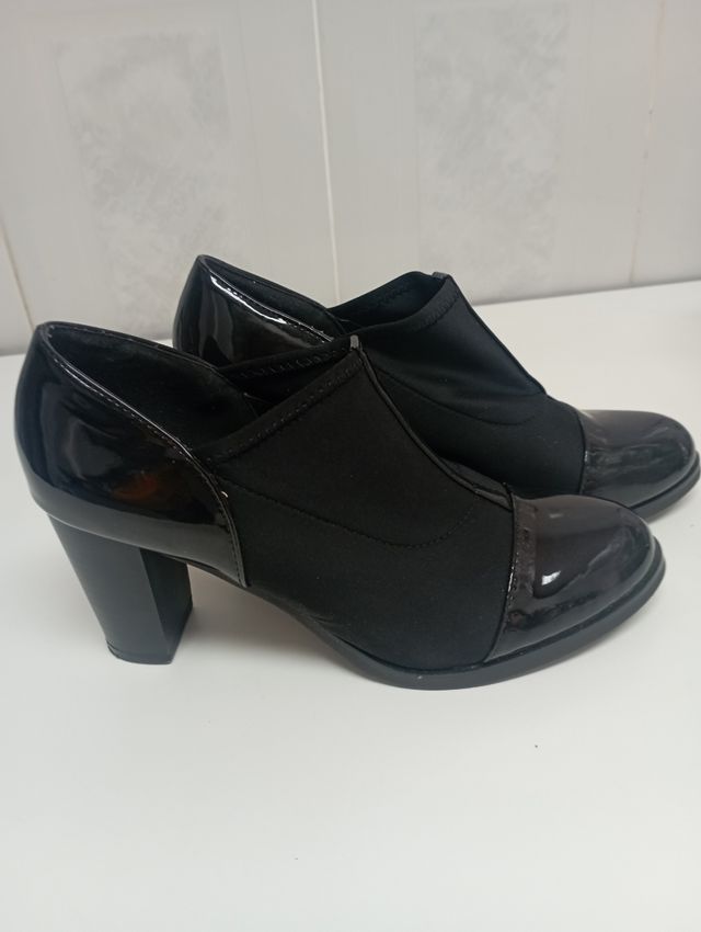Zapato botín tacón charol y tela