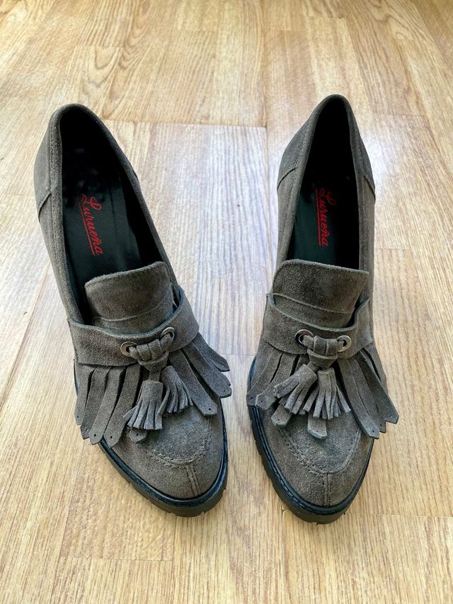 Zapato Piel Ante Gris Tacón 39