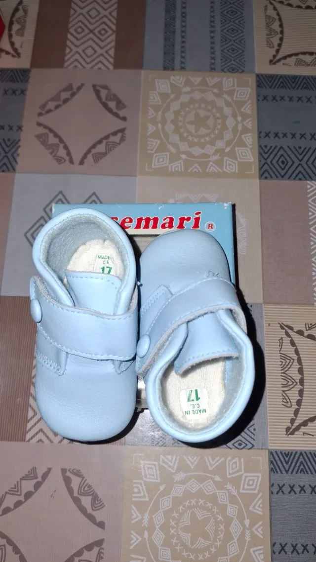 Zapatos de bebé marca Josemari en color azul. - Talla 17. - Cierre de velcro. - En su caja