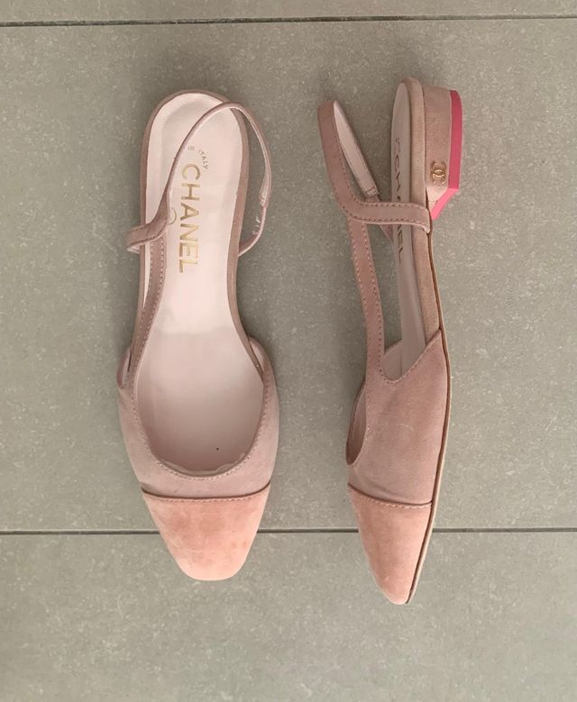 Zapatos Chanel beige/rosa cling back