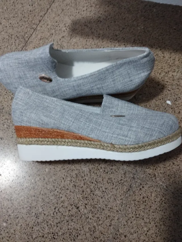 Zapatos cómodos cuña gris y dorado