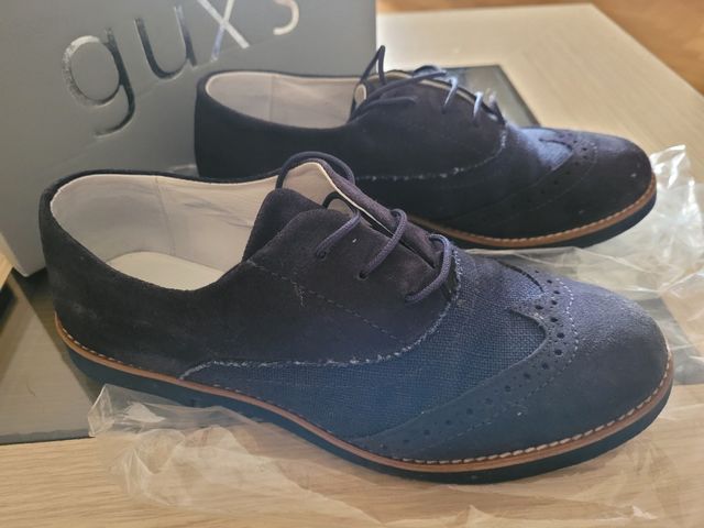 Se venden zapatos de comunion niño, de serraje, ante. Numero 36, color azul marino. Costaron 69€. Usados solo el dia de la comunion.