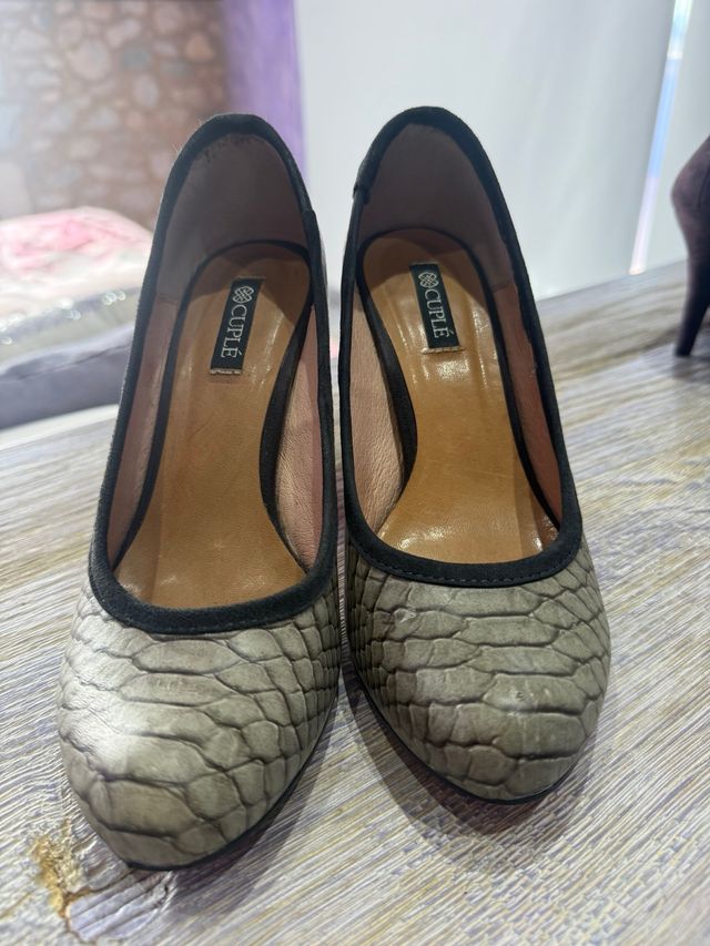 Zapatos CUPLE tacón piel gris/negro