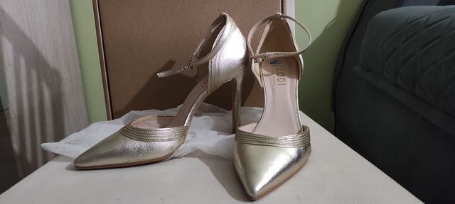 Zapatos de tacón dorados