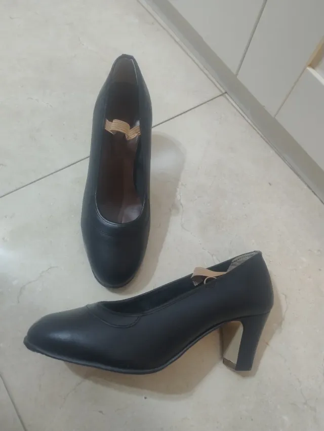 Elegantes zapatos de flamenco con puntilla número 38 - Tacón grueso y estable. - Diseño clásico