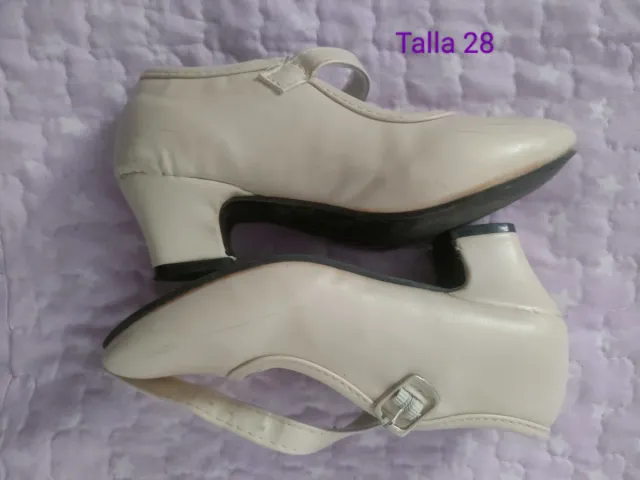 Zapatos de baile en color beige, talla 28. - Diseño clásico con tira al tobillo. - Tacón bajo y cómodo. - Cierre con hebilla.