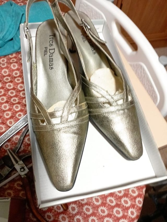 Zapatos de salón dorados Tres Damas.Piel
