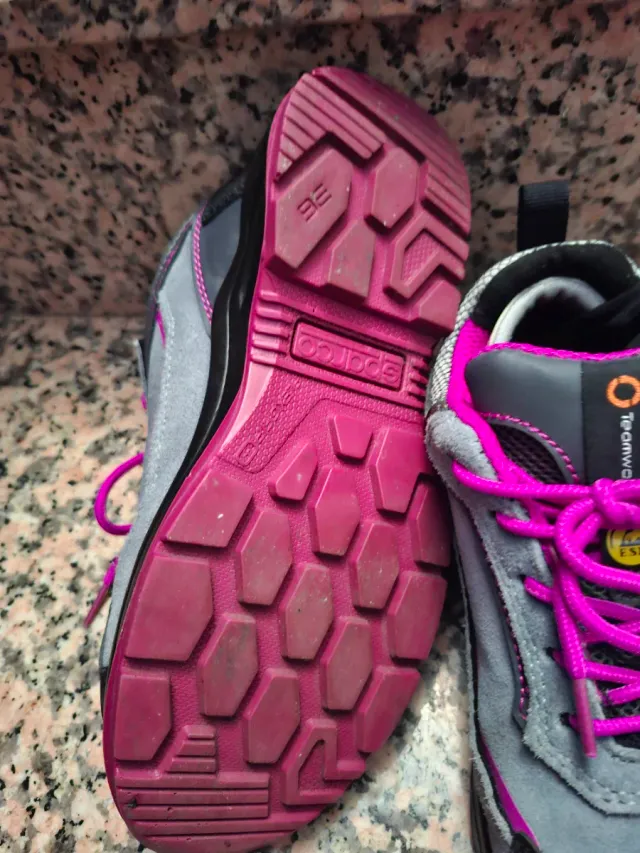 Zapatos de seguridad Sparco grises y rosas
