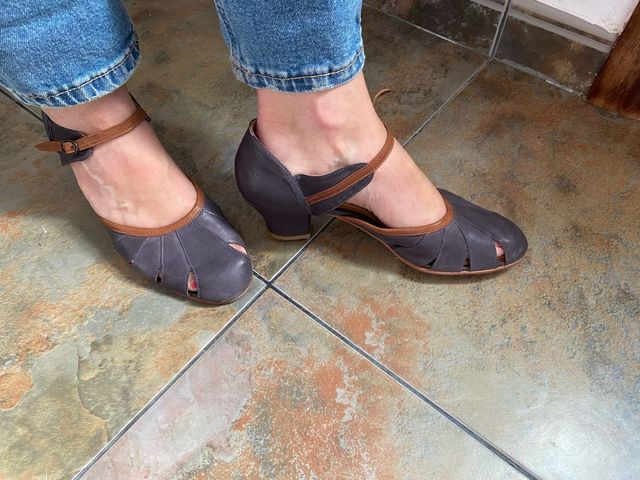 Buen estado · 38 · slide& swing shoes · Azul y Marrón