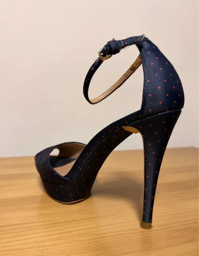 Zapatos de tacón azul con lunares rojos