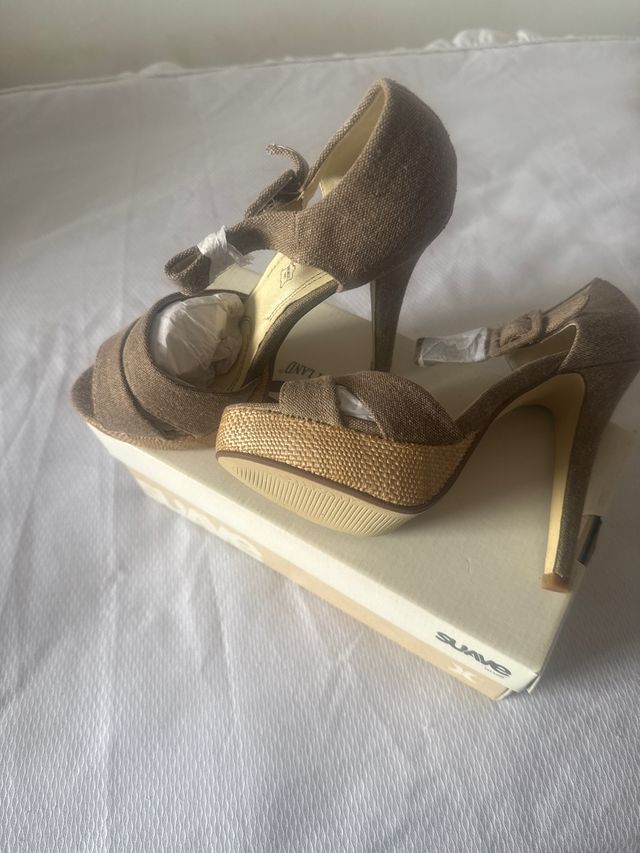 Zapatos de tacón beige y marrón nuevos sin extrena