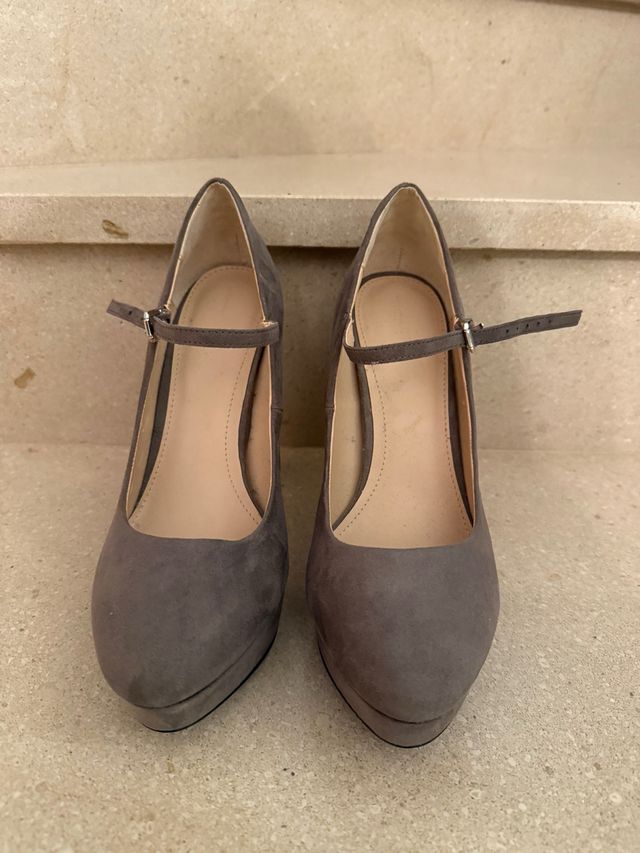 Zapatos de tacón grises con pulsera