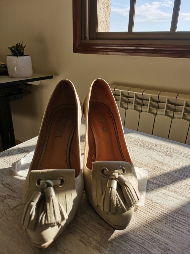 Zapatos de tacón grises de Uterqüe. 100% piel. 36.