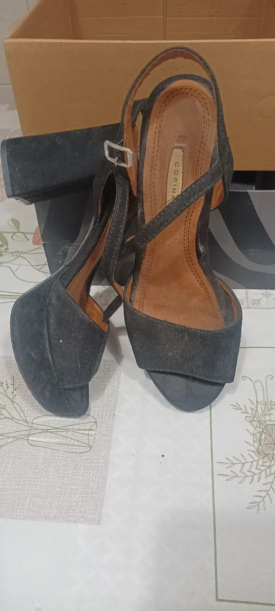 Elegantes zapatos de tacón negros con plataforma. - Diseño de sandalia con tiras. - Tacón grueso y alto. - Material tipo ante.