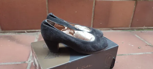 Hechos a mano. Talla 36. Tienen algunas marcas de desgaste del ante como se ve en las fotos, pero aún tienen mucho que taconear.