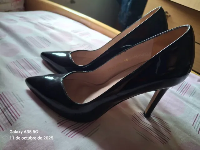 Zapatos de tacón negros charol