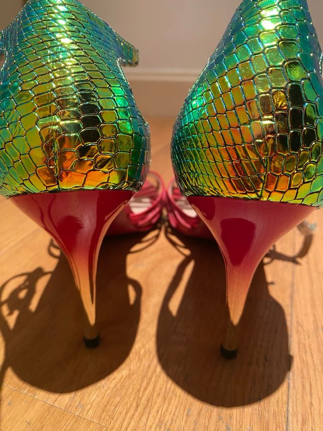 Zapatos de tacón para bailar tango verdes y rojos