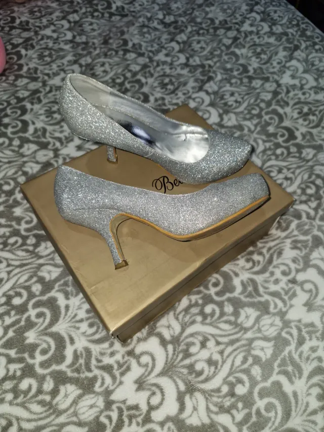 Zapatos de tacón plateados con purpurina