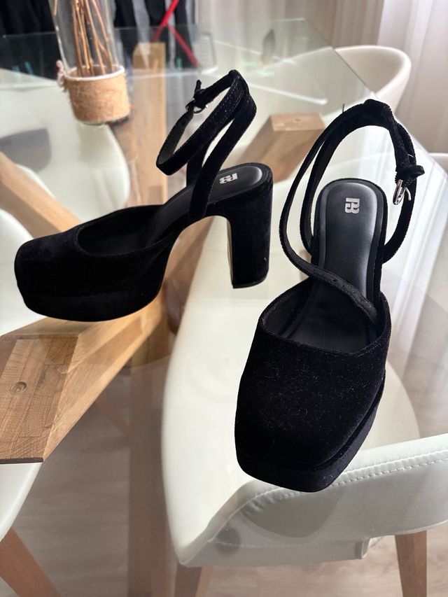 Zapatos de tacón Pull&Bear negros terciopelo