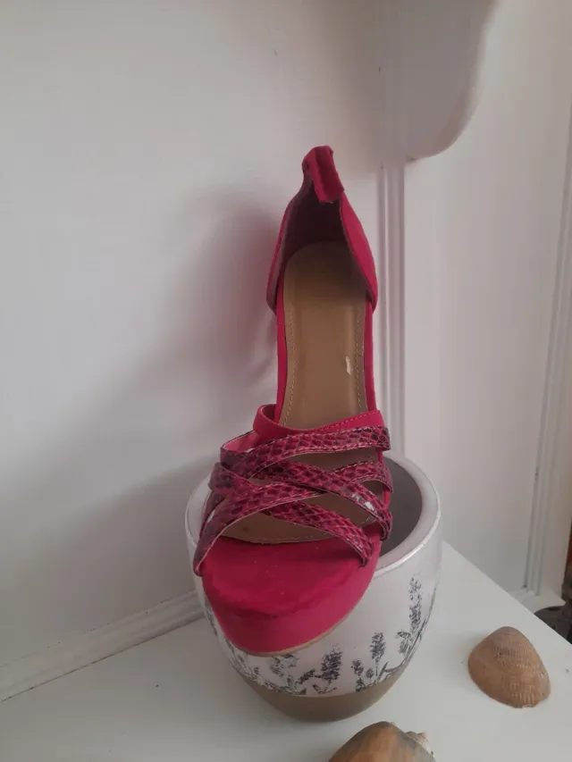 Zapatos de tacón rosa y rojo