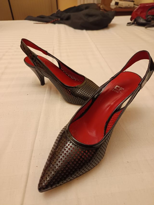 Zapatos destalonados negros y rojos