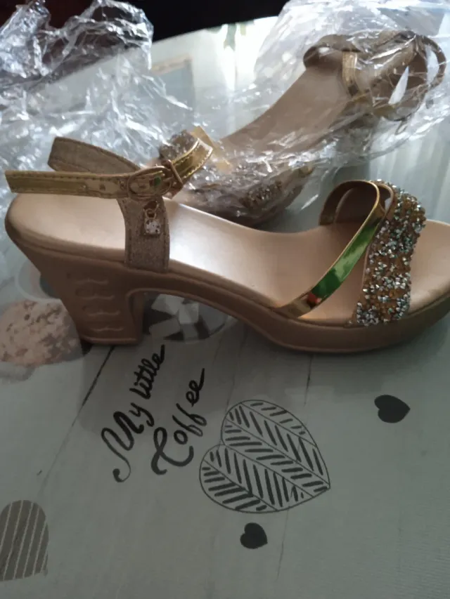 Zapatos dorados tacón 7 cm.numero 37. Y vale 38