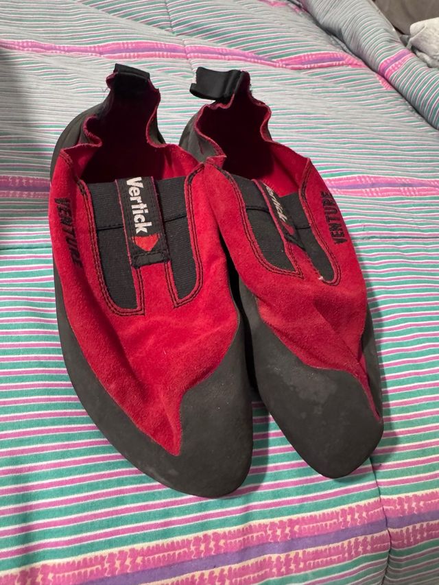 Zapatos de escalada marca Vertick Venture en color rojo. - Diseño deportivo. - Cierre elástico. - Suela muy poco gastada con muy buena adherencia.