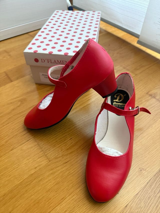 Detalles del productoZapatos de flamenco para niña en color rojo, talla 36. Perfectos para clases o actuaciones.