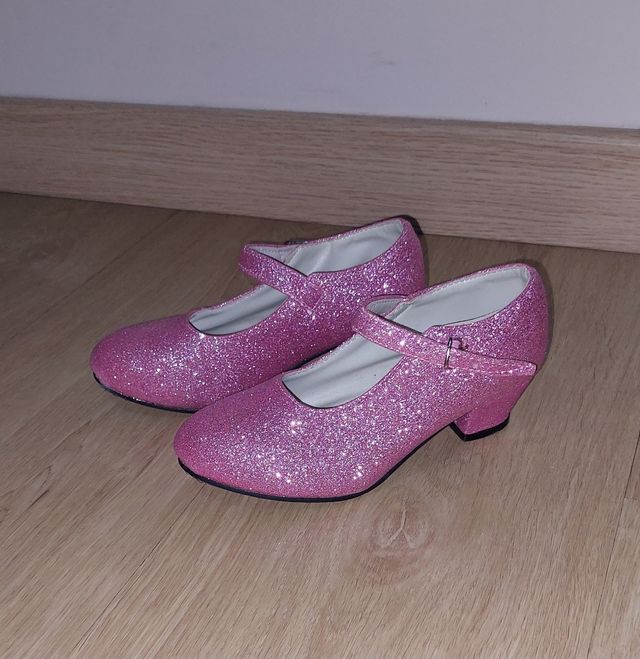 Zapatos Flamenco Niña Purpurina Rosa Tacón