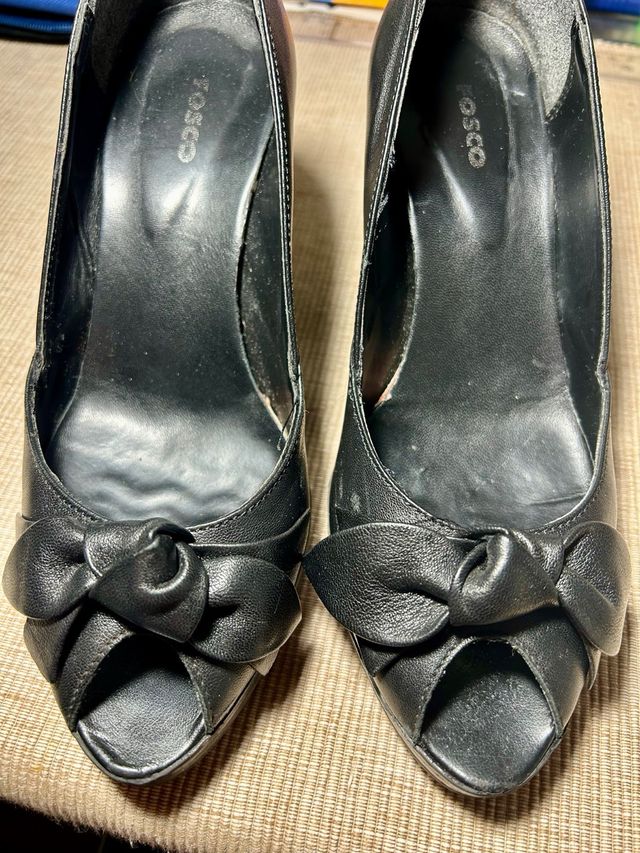 Zapatos Fosco Tacón Piel Negro Lazo Talla 37