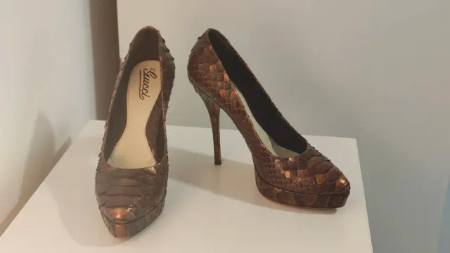 Zapatos Gucci Piel Serpiente Marrón/Dorado