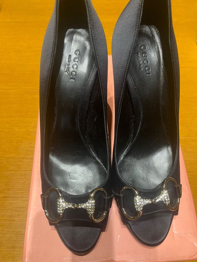 Zapatos Gucci Satén Negro y Dorado Talla X