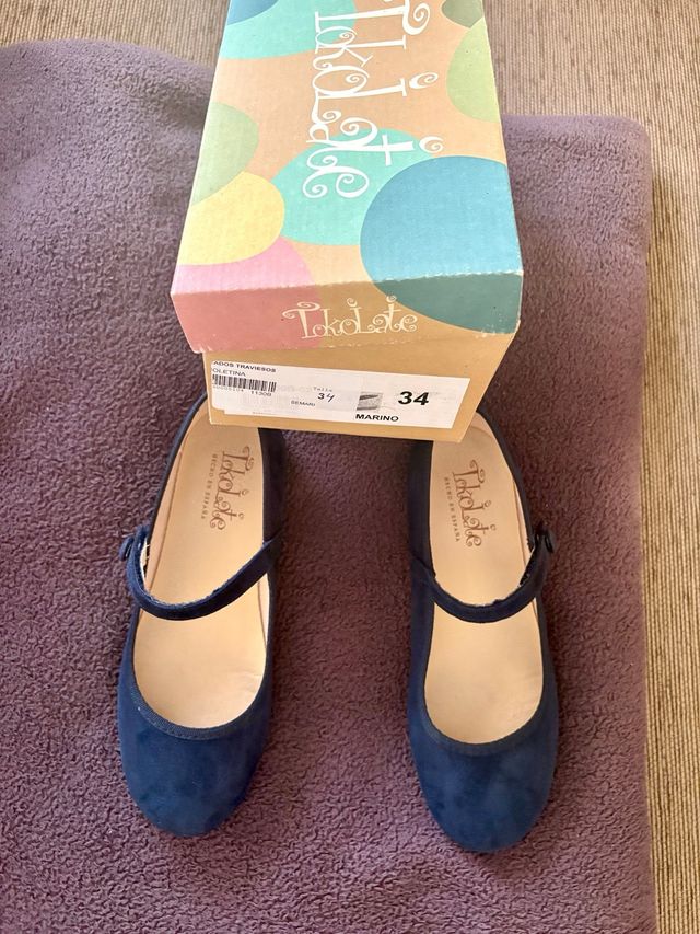 Detalles del productoManoletinas azules infantiles de la marca Txocolate.
