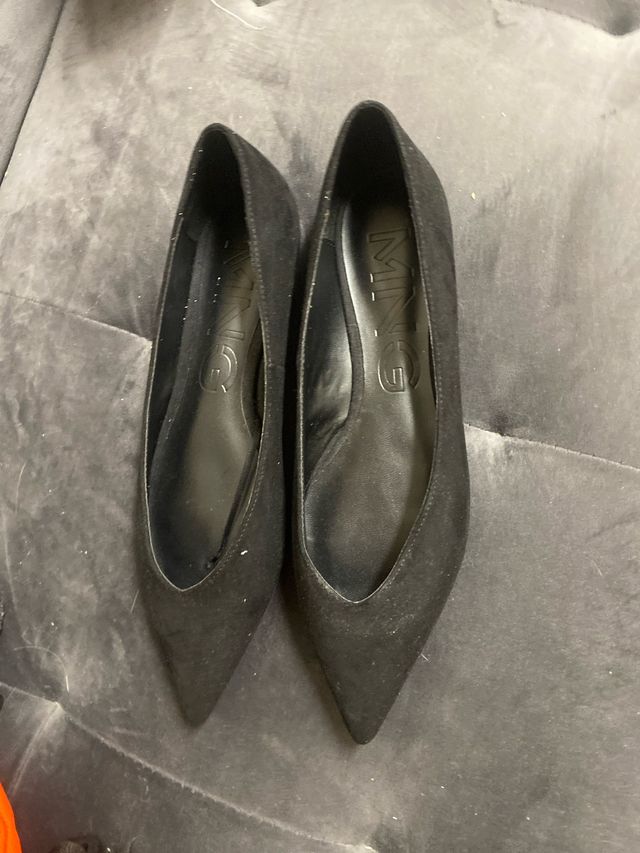 Elegantes zapatos negros de la marca Mango. - Material exterior de ante. - Diseño de punta fina. - Tacón bajo.