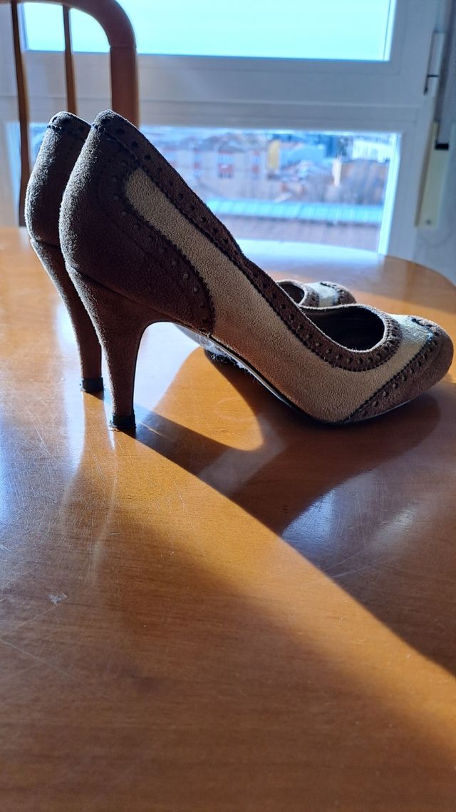 Zapatos marrones de ante y tacón. Talla 37