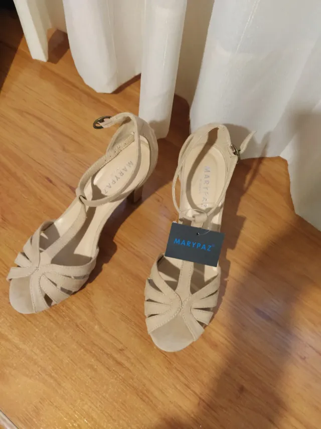 Zapatos Marypaz Tacon Tiras Beige Talla 39