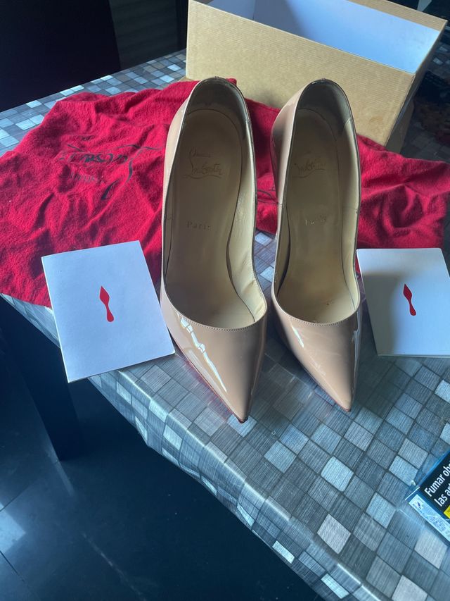 Se venden zapatos color beige de lou boutin muy poco uso número 39 ,recién cambiada la suela nueva(en la misma tienda original)se entrega certificado de compra y de la suela nueva
