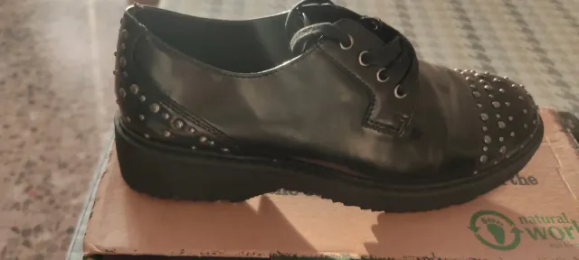 Zapatos negros cordones tachuelas suela goma